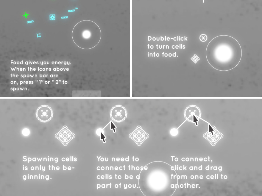 The main idea was to be able to allow players the capability to combine different cell-types and create different kinds of configurations. Depending on the configurations, players could exhibit different kinds of behaviors.
