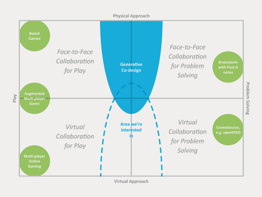 The area of exploration we’re interested in lies between Play and Problem Solving where the approach are more virtual than physical.