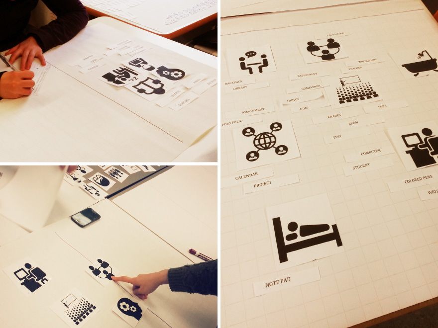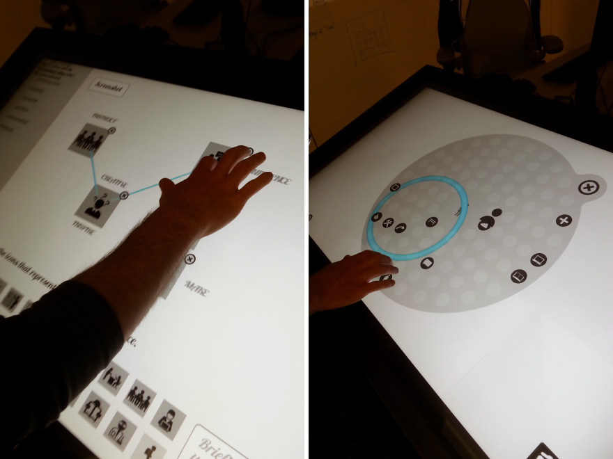 Our design approach was and iterative process involving the experimentation of different toolkits and the observations and participants feedback, in which one stage informed the next. We started with paper-based tools and analyzed the behaviors and outcome of the participants work.